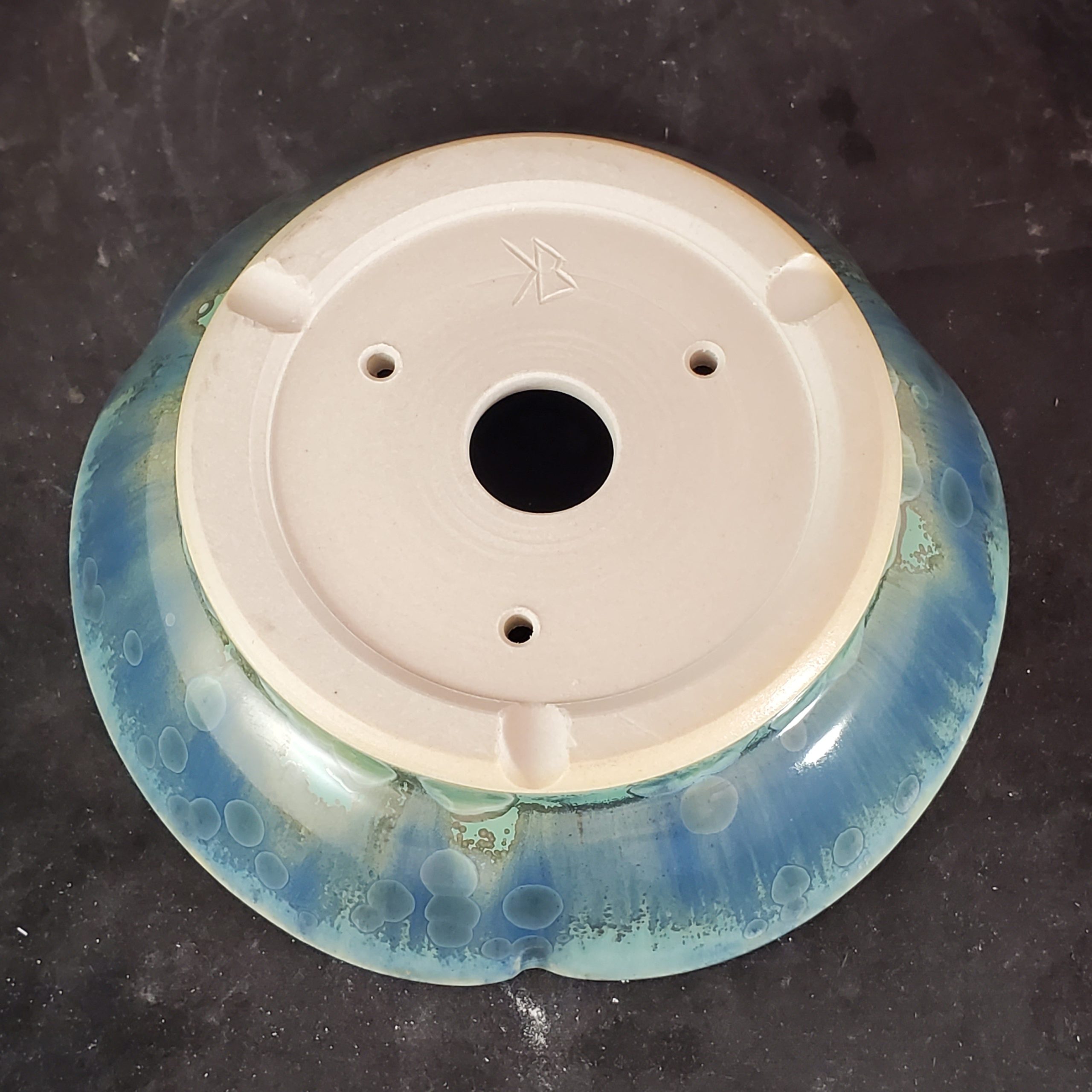 | Exterior Color | Gradient of blue – green hues, transitioning from deep blue at the base to lighter turquoise/green near the rim with speckled dark green/blue accents |