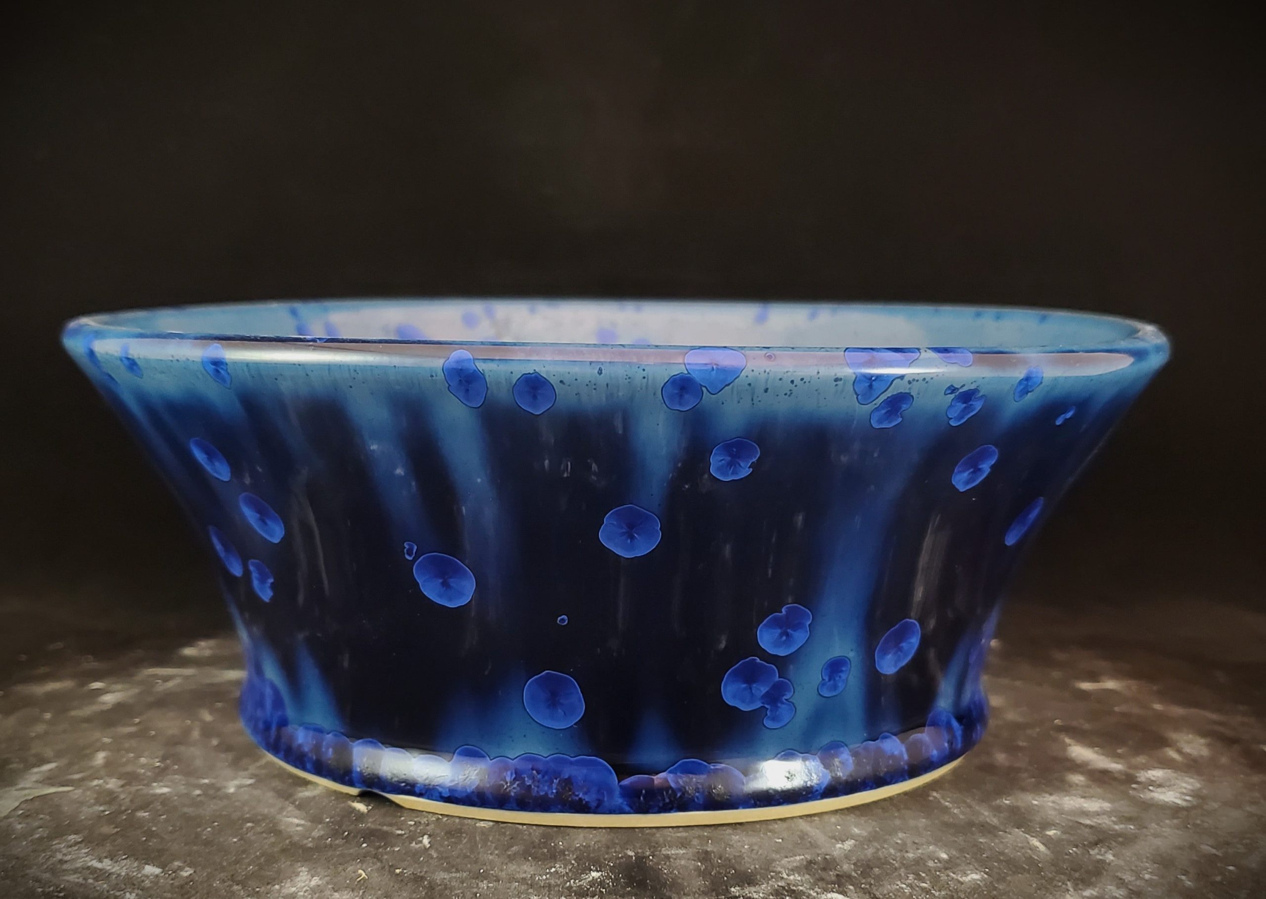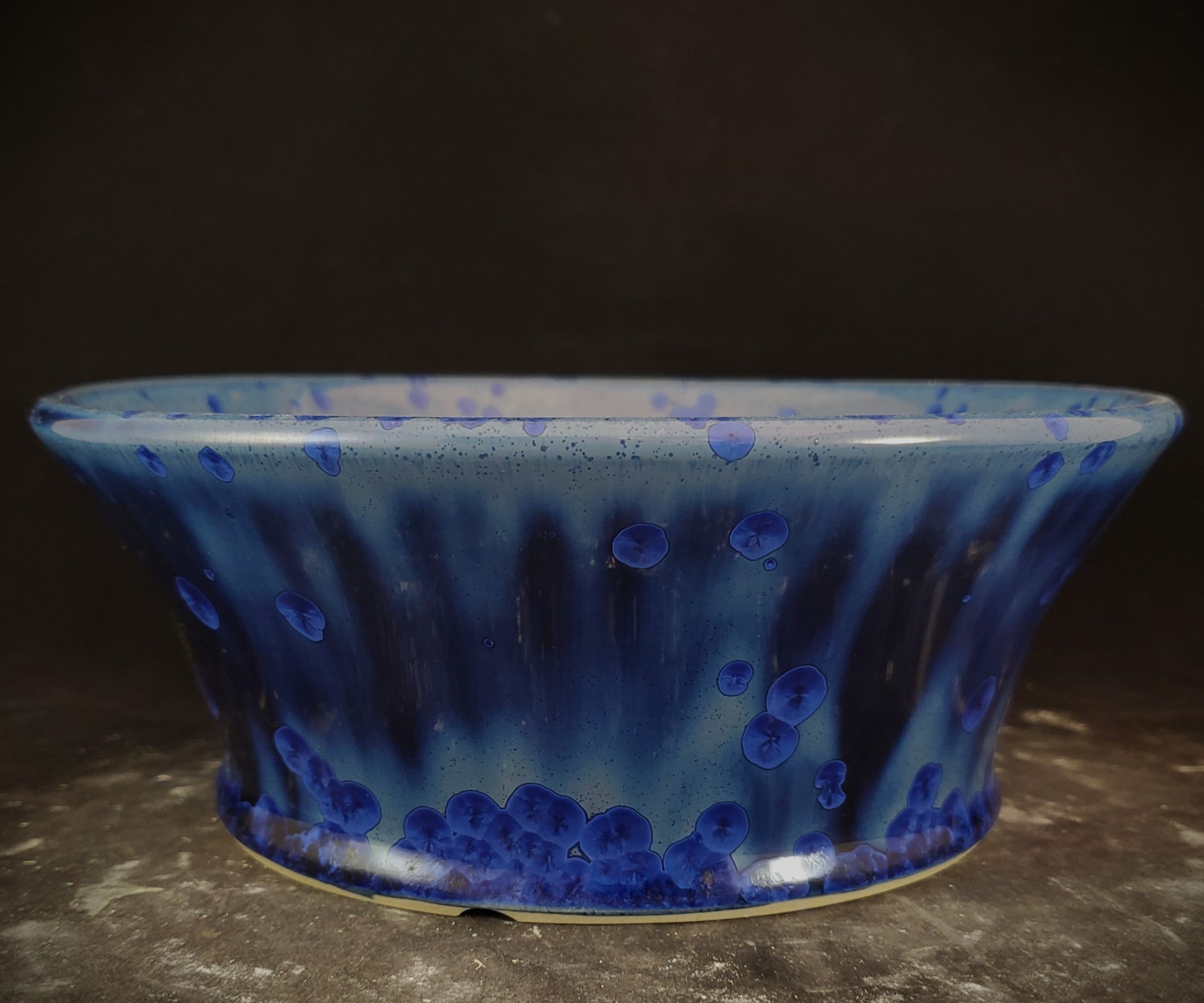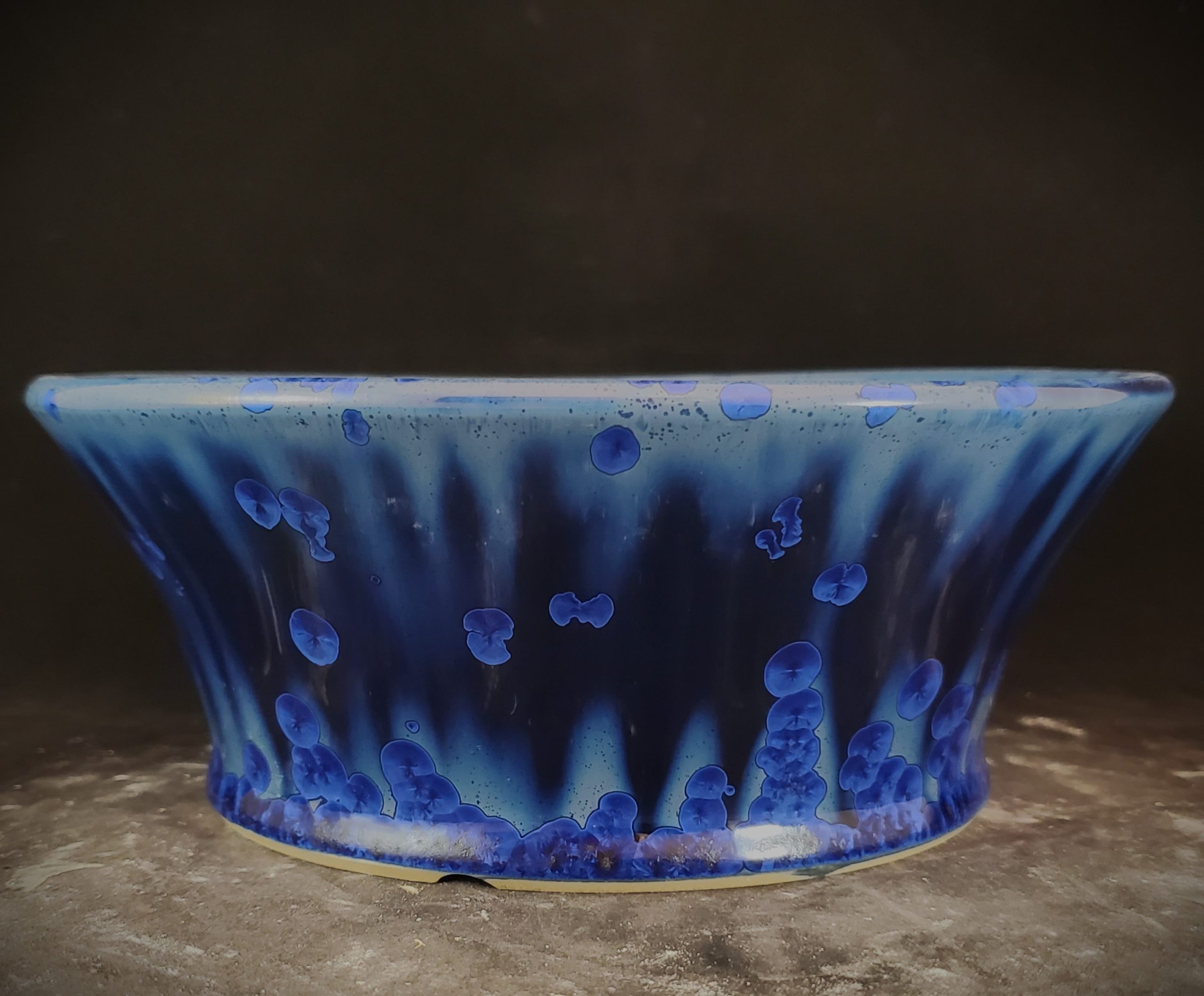 This ceramic planter is a wonderful blend of artistry and functionality. It features a beautiful blue gradient with abstract organic “blob” patterns, giving it a unique and handcrafted look. With its flared – rim design and multiple drainage holes, it’s perfect for growing bonsai or other small – to – medium – sized plants.