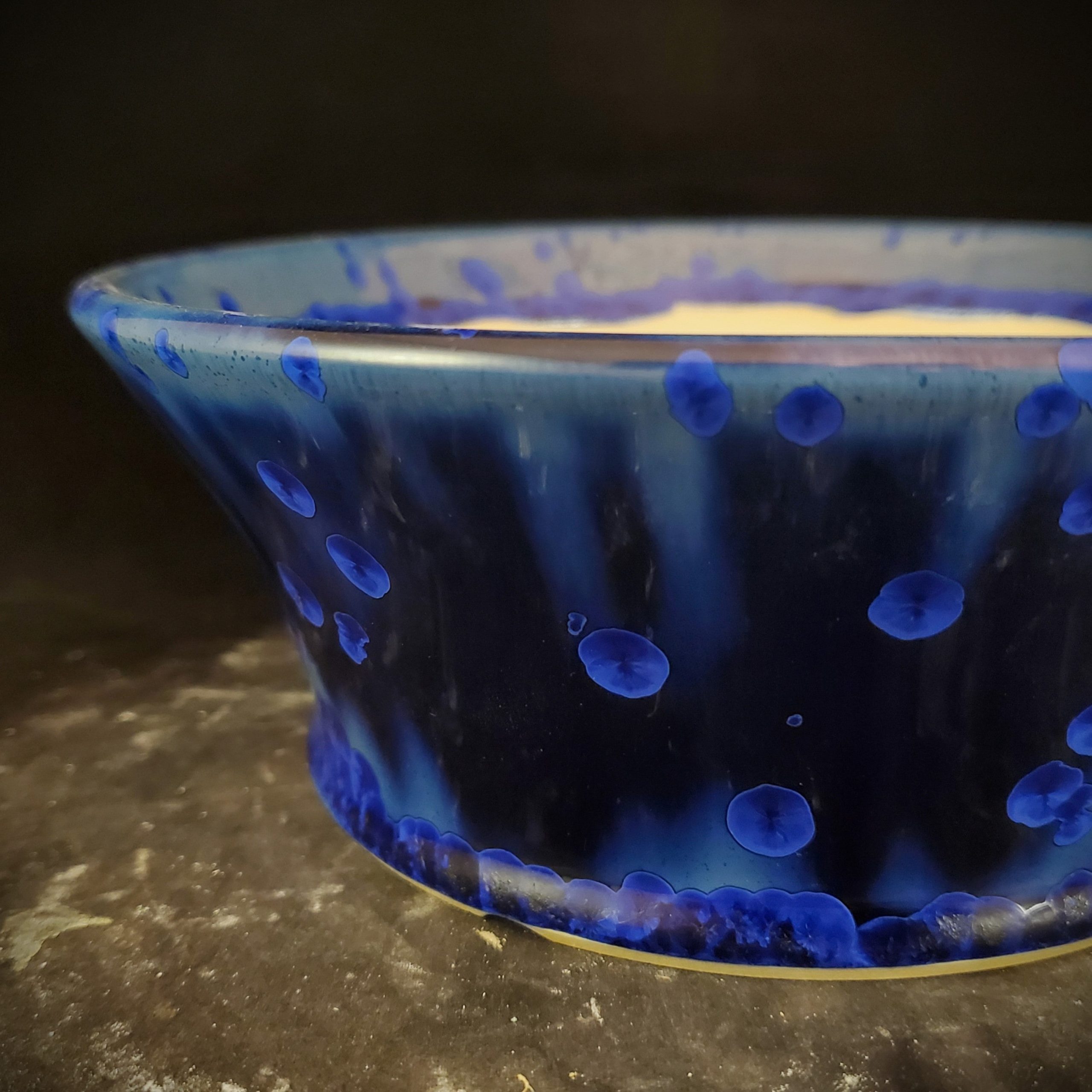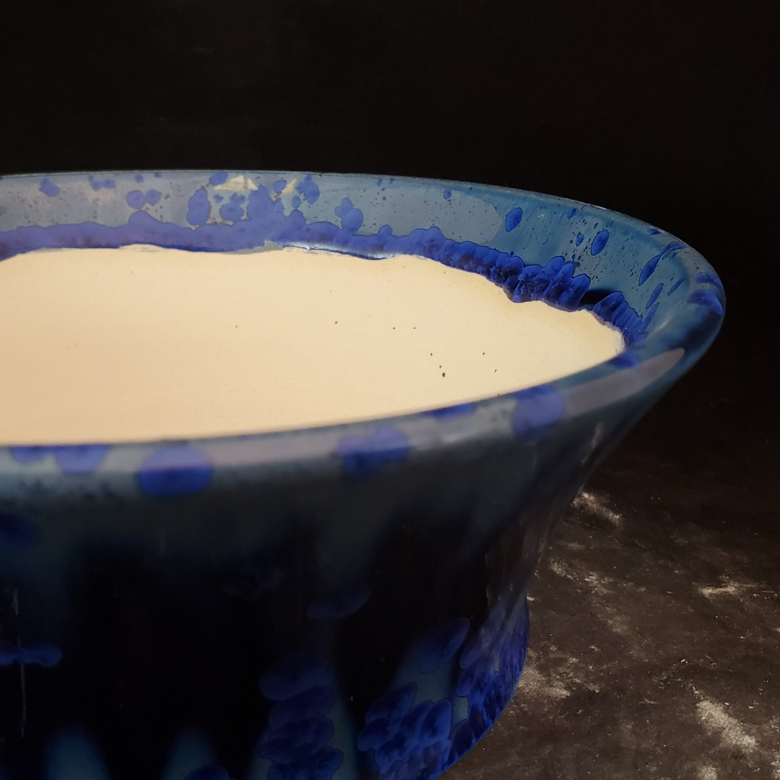 - Glossy glaze with artistic blue patterns and a flared, symmetrical shape for visual appeal and stability.