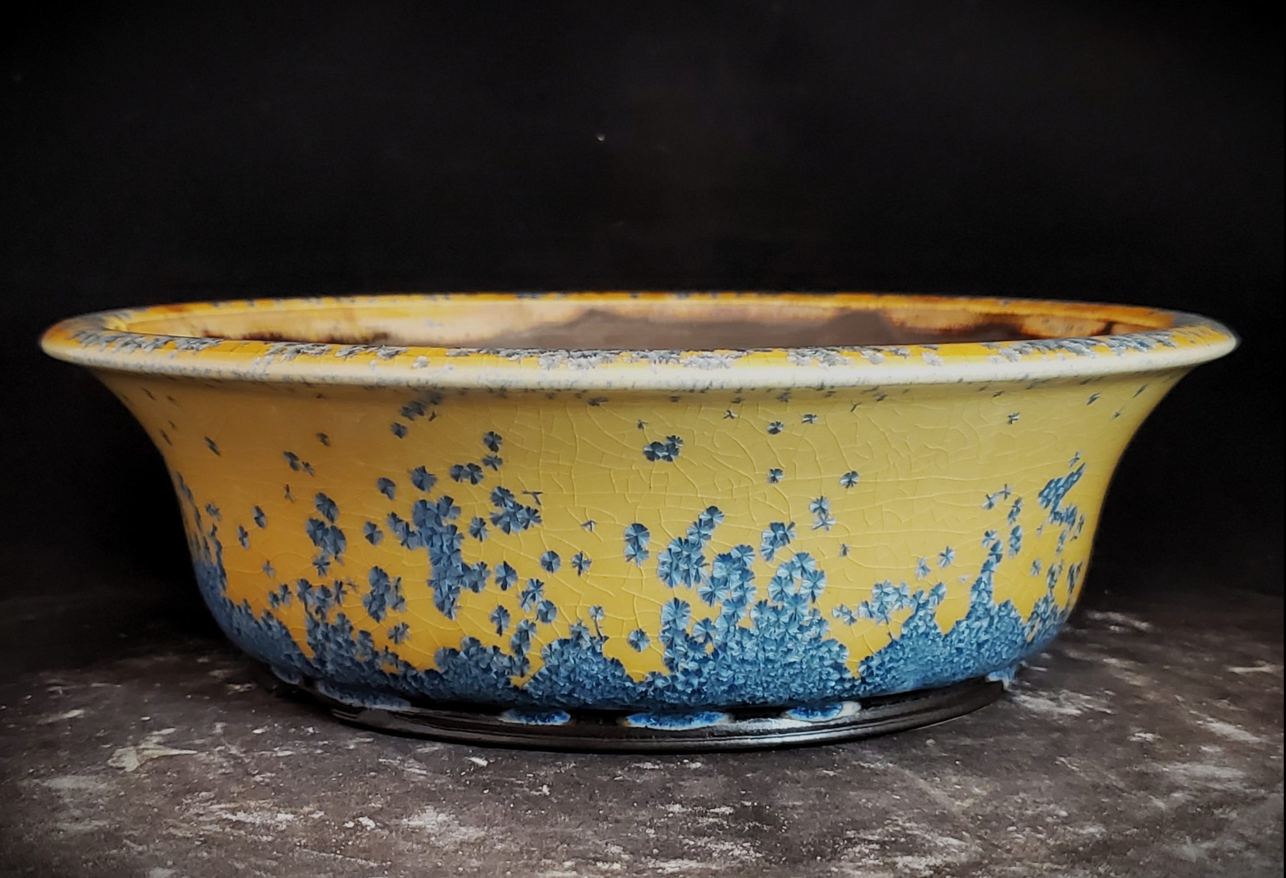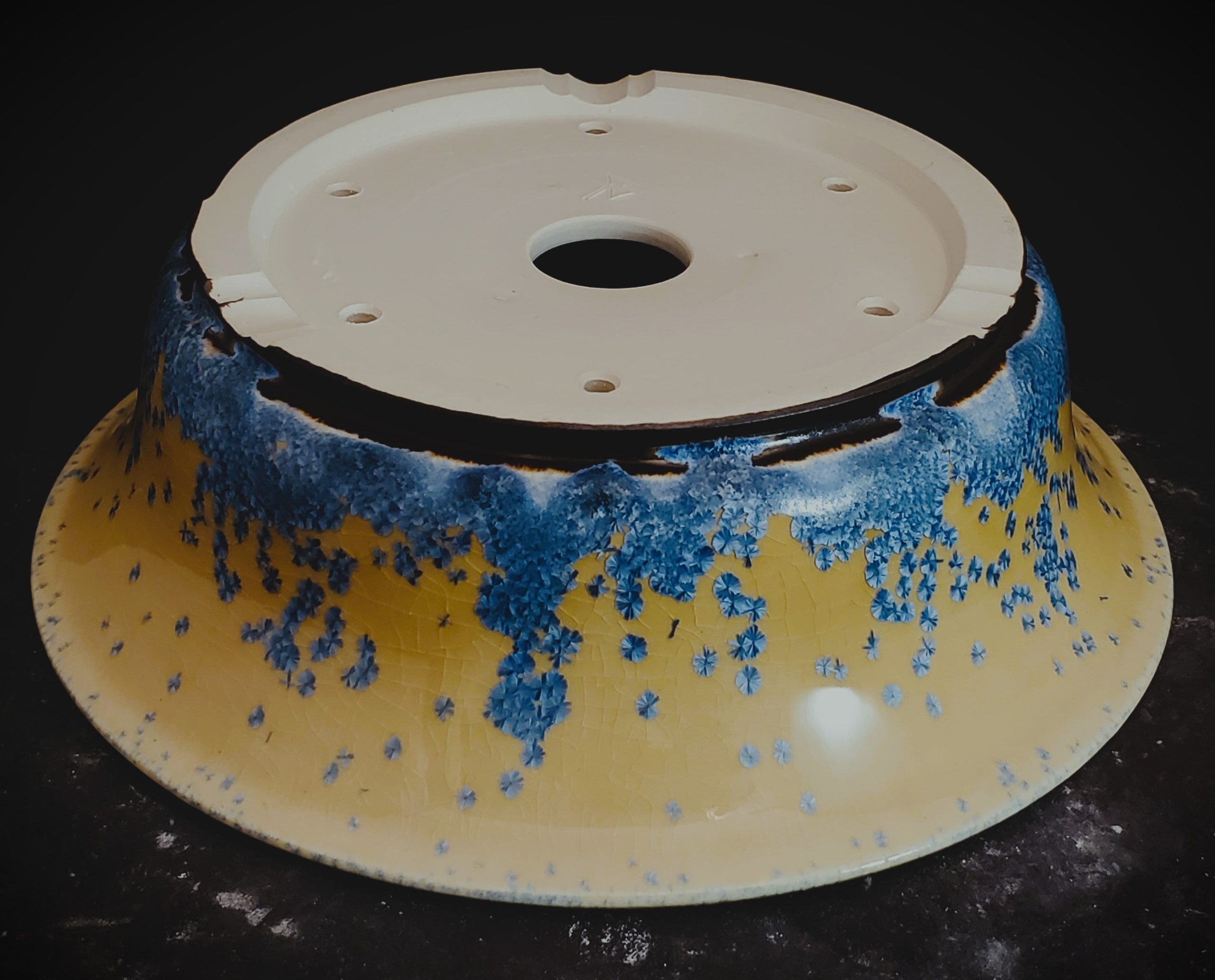 - Crackle glaze on the yellow base for an artistic look