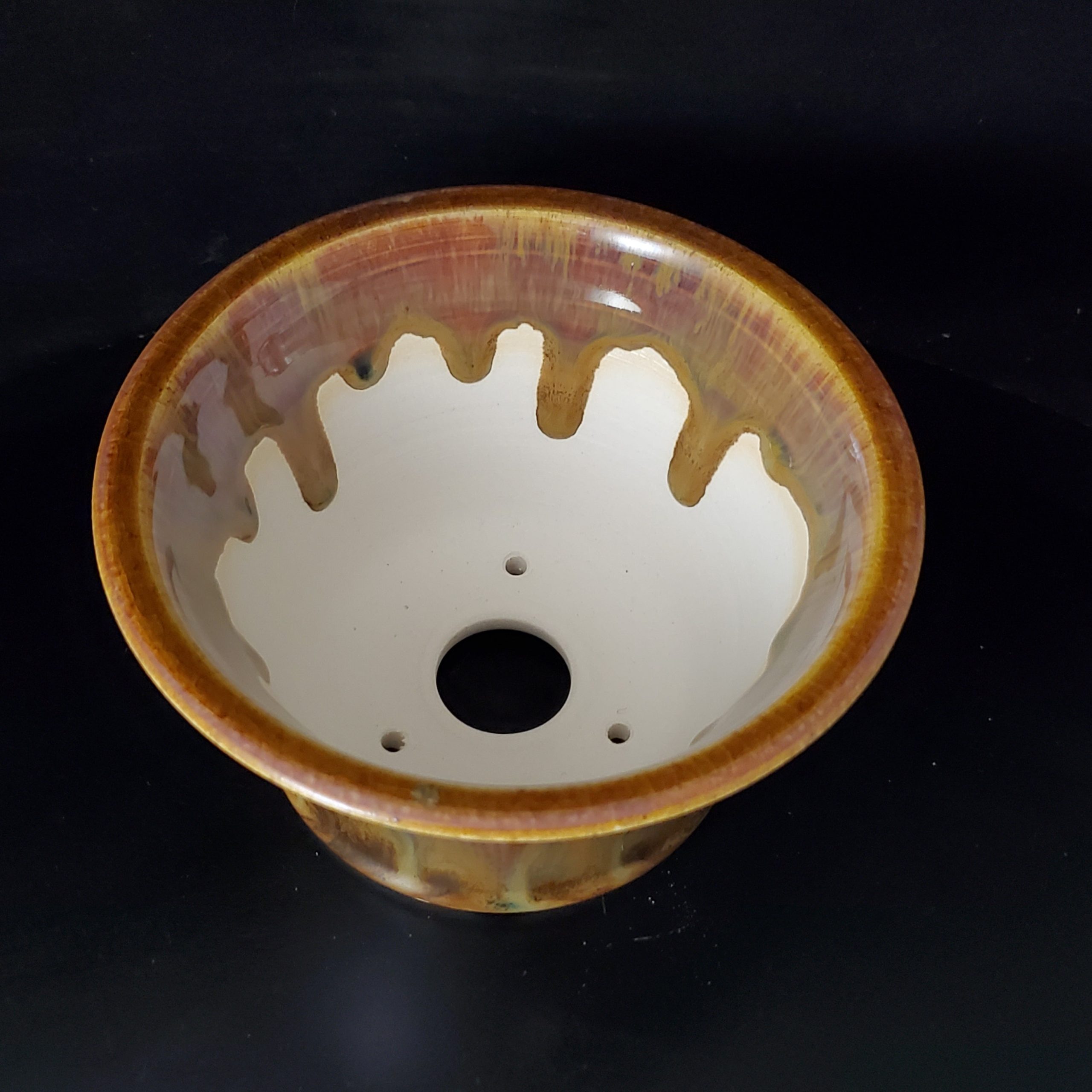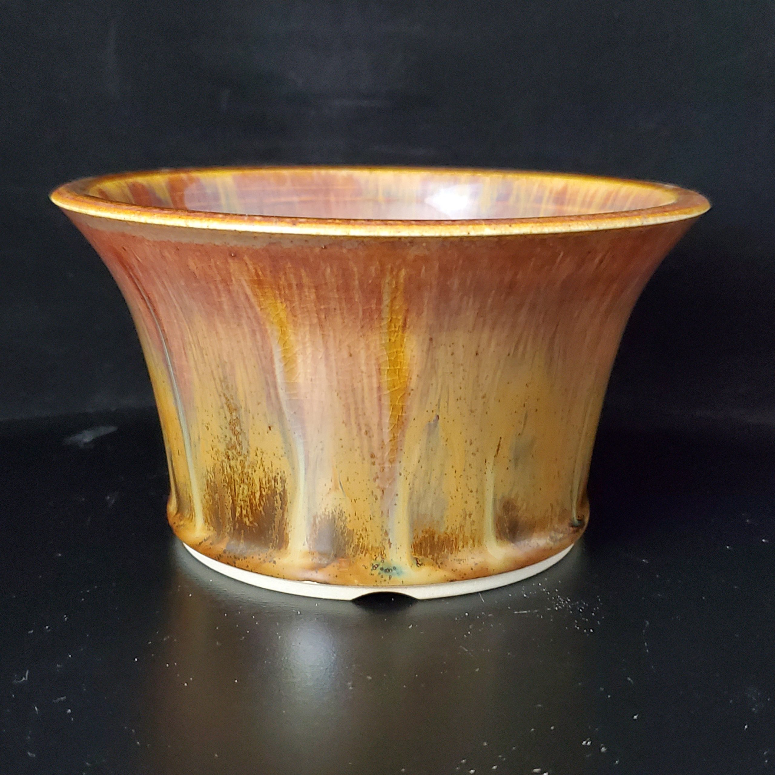 This ceramic plant pot is a beautiful and functional addition for growing small plants. It features a flared shape with a wider top for easy access and a narrower base for stability. The warm, earthy tones of the glaze, along with its unique dripped – scalloped pattern, add a touch of artisanal charm to any indoor space.