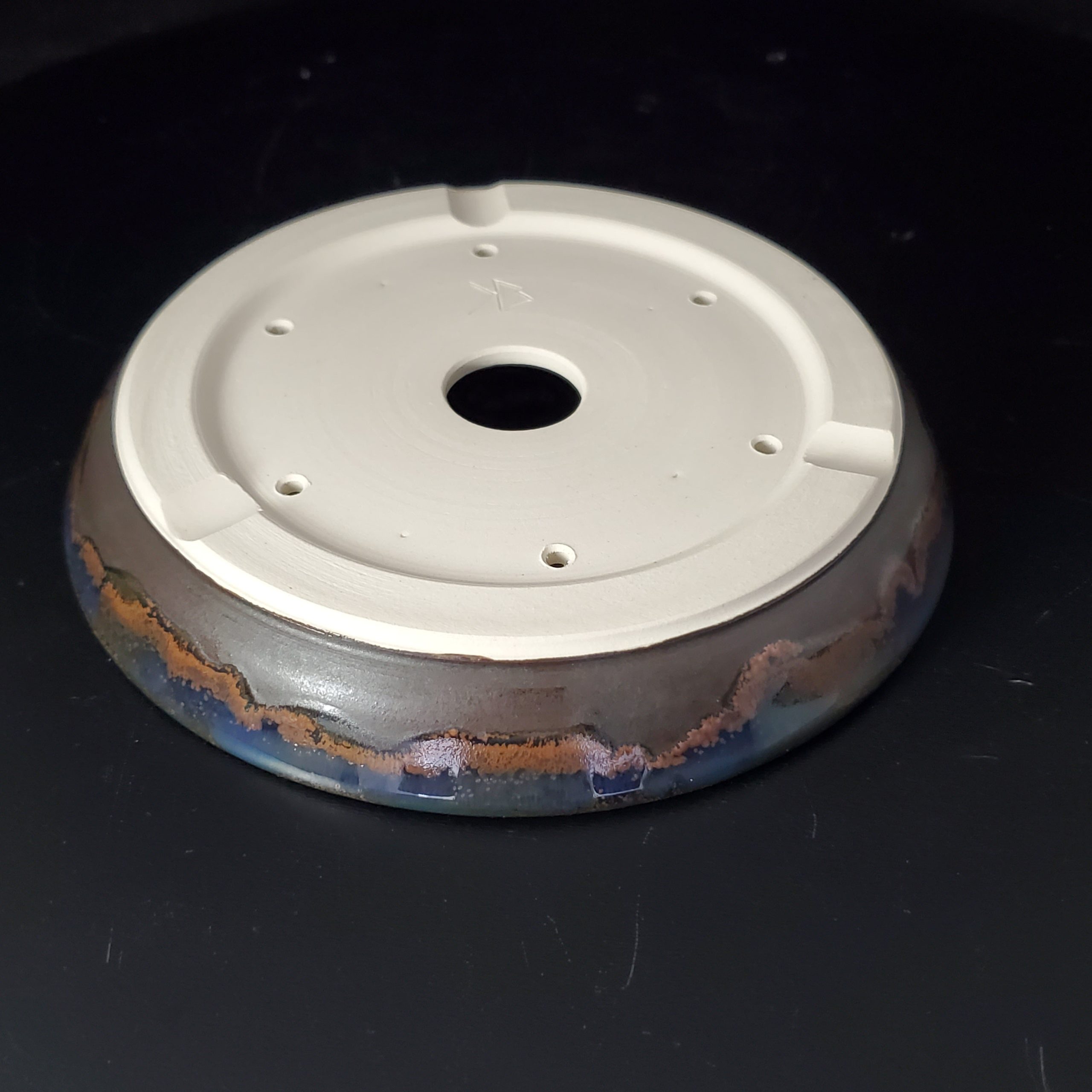 This product is a ceramic planter saucer, perfect for bonsai or small decorative plants. It features a beautiful organic – gradient glaze on the exterior, with a smooth white interior. The saucer has well – crafted drainage holes and a solid construction, making it both functional and visually appealing.