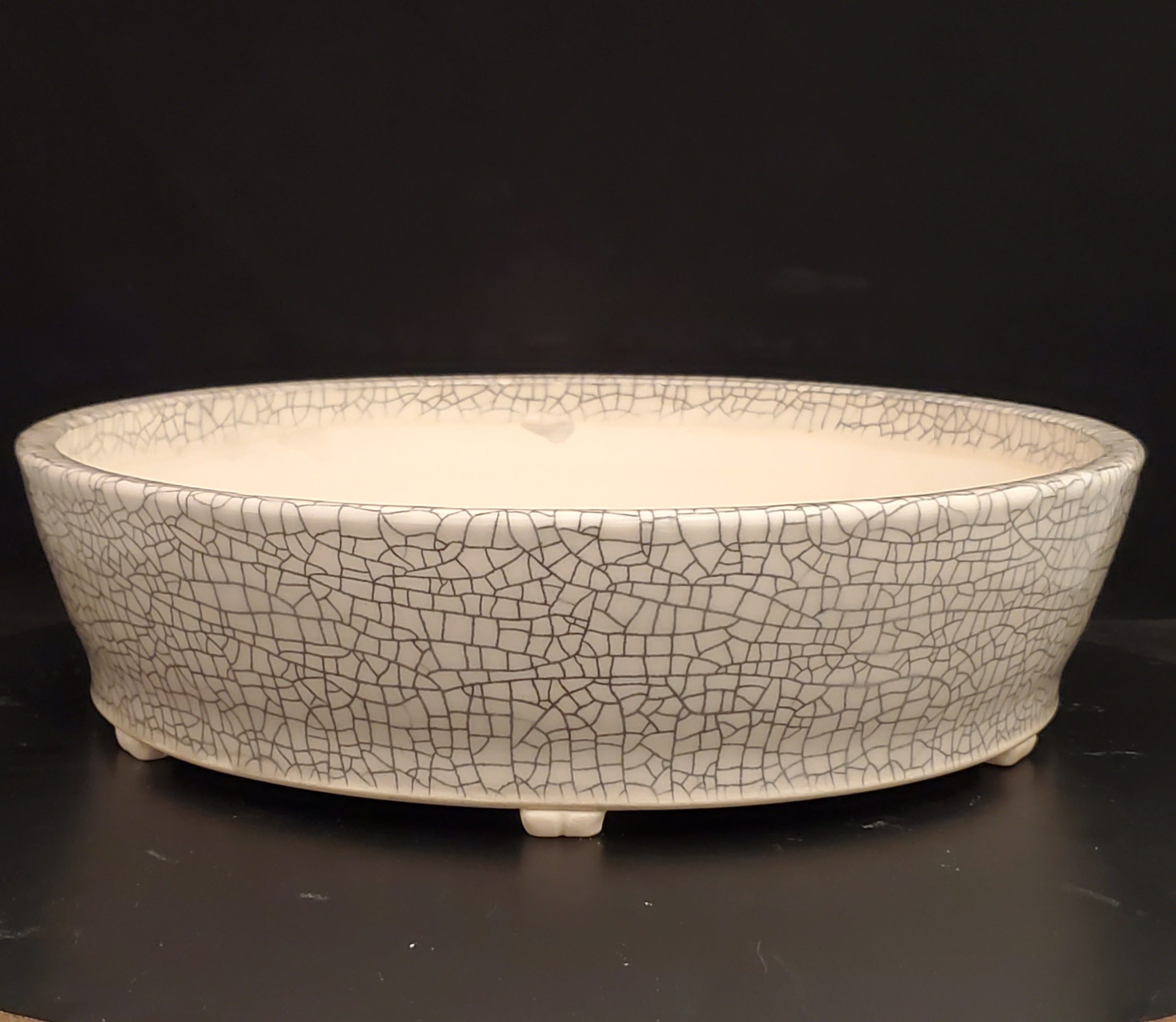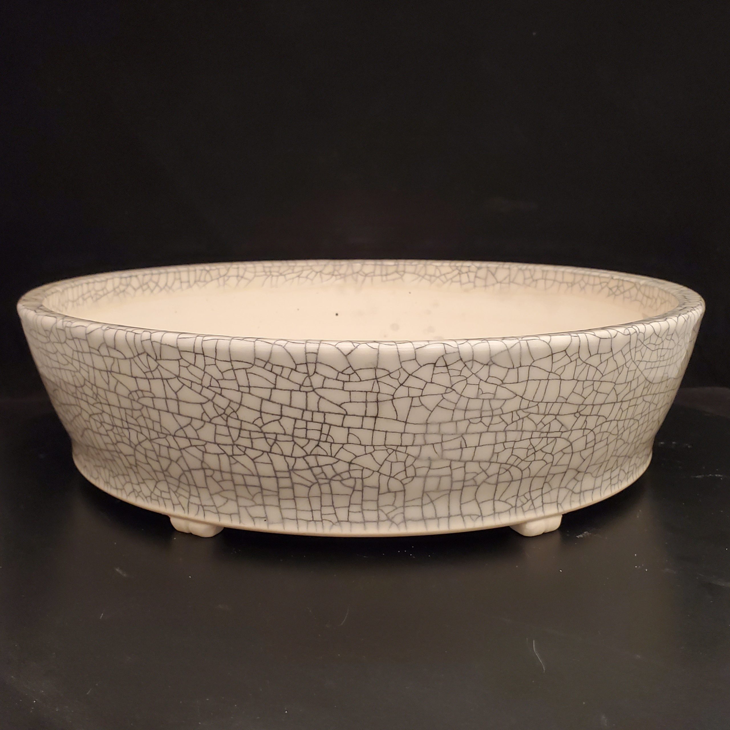 Crackled-glaze Oval Ceramic Bonsai Pot