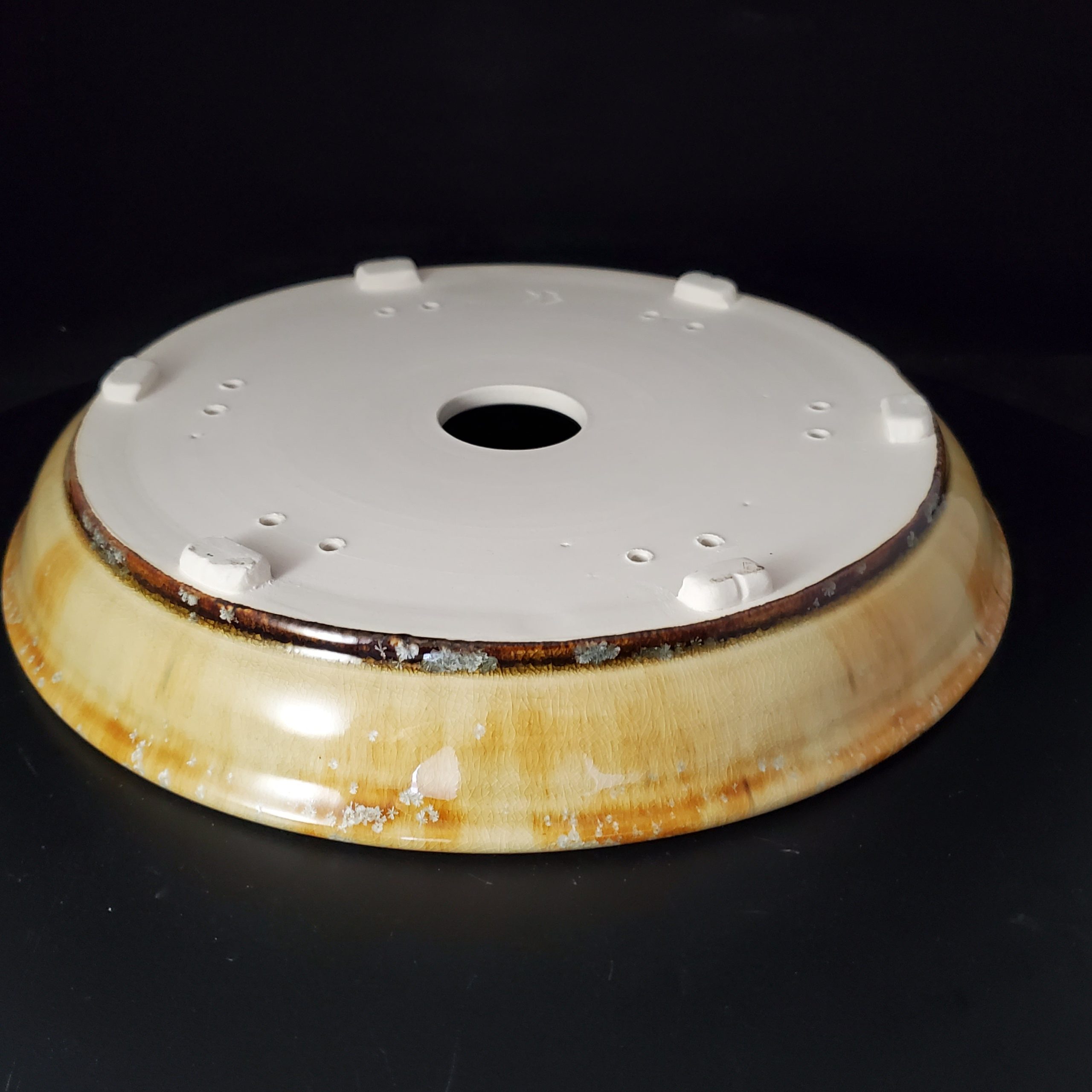 Color Cream/ivory base with golden – yellow or amber marbled glaze