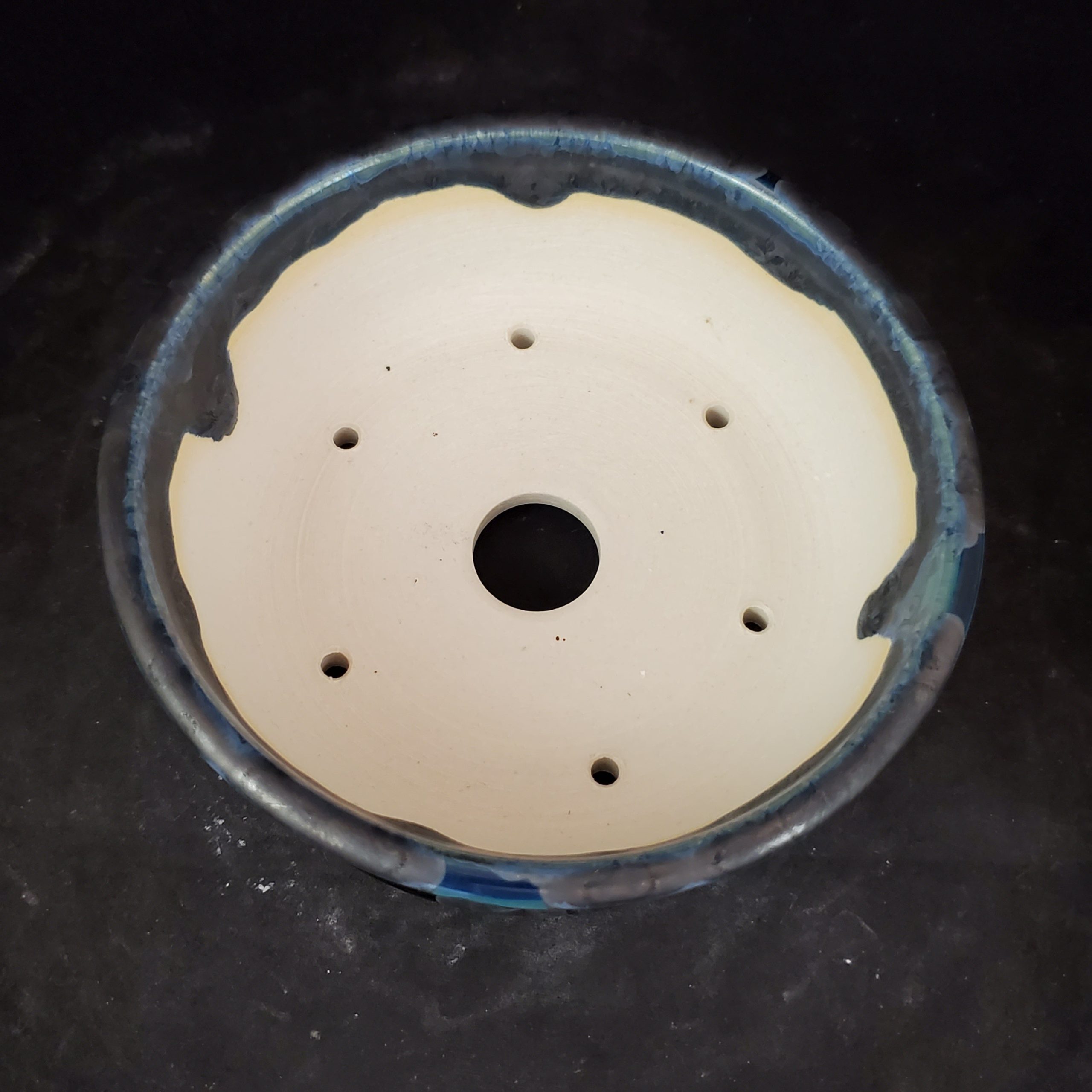 - It has a drainage system with six small evenly spaced holes around a central larger hole for proper water drainage and airflow.