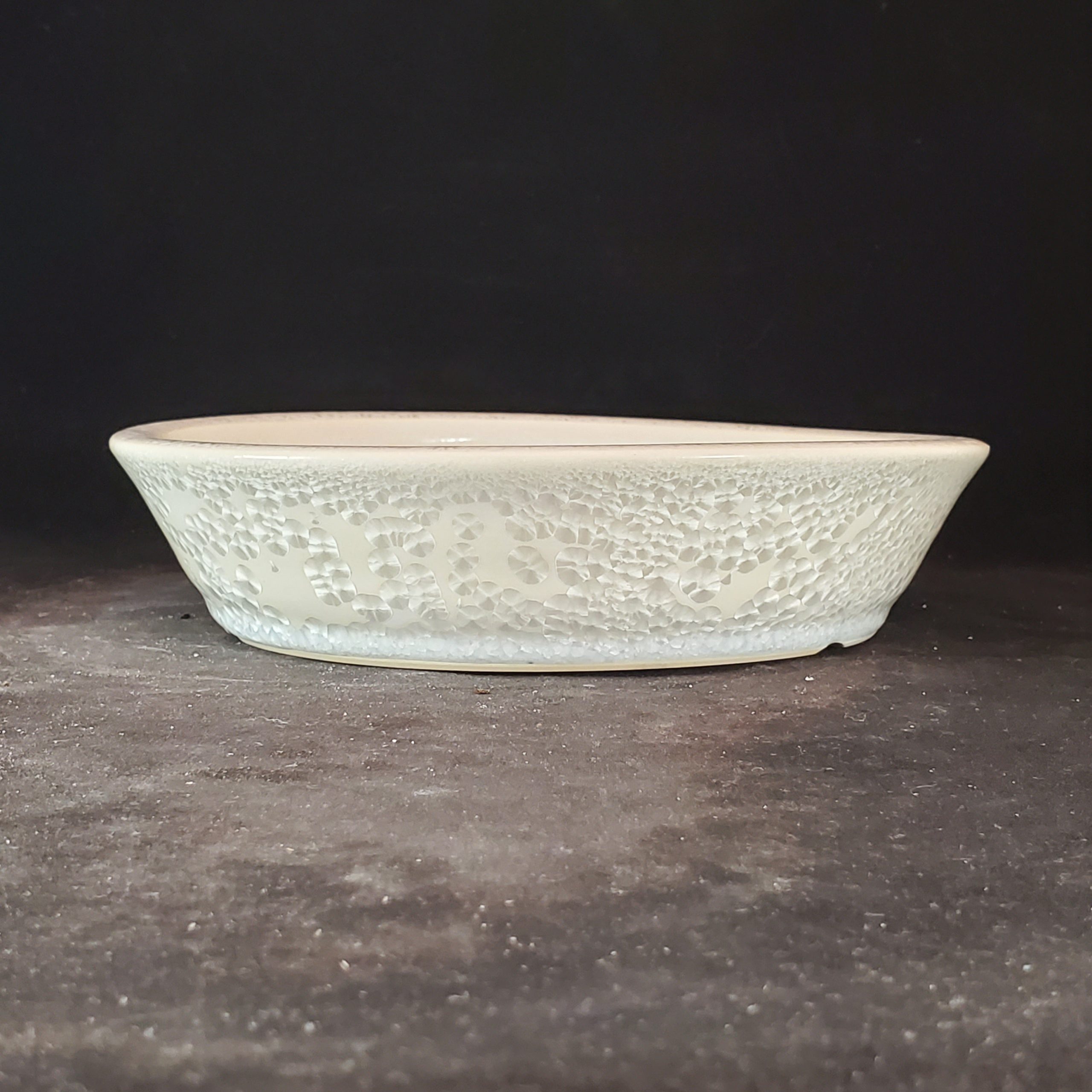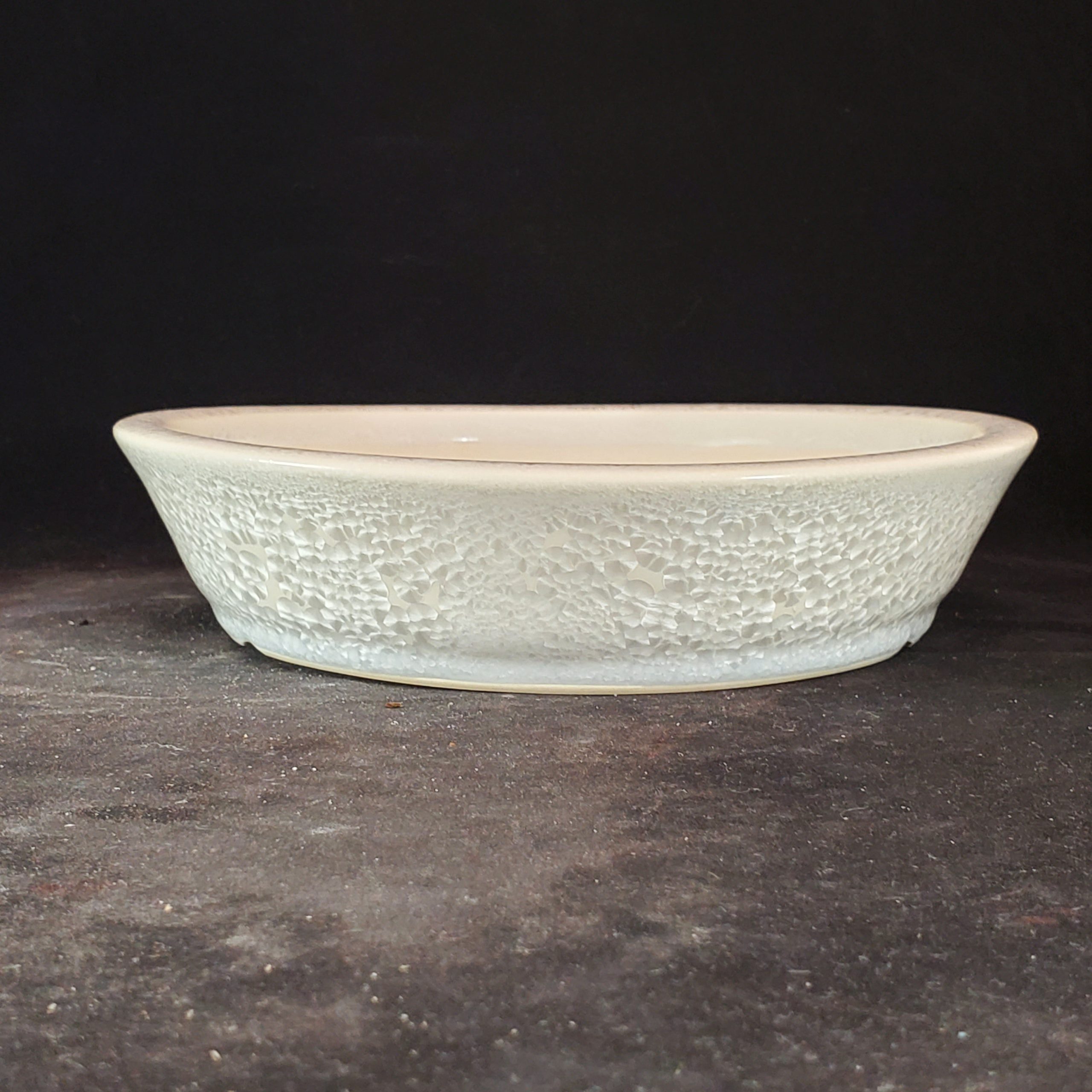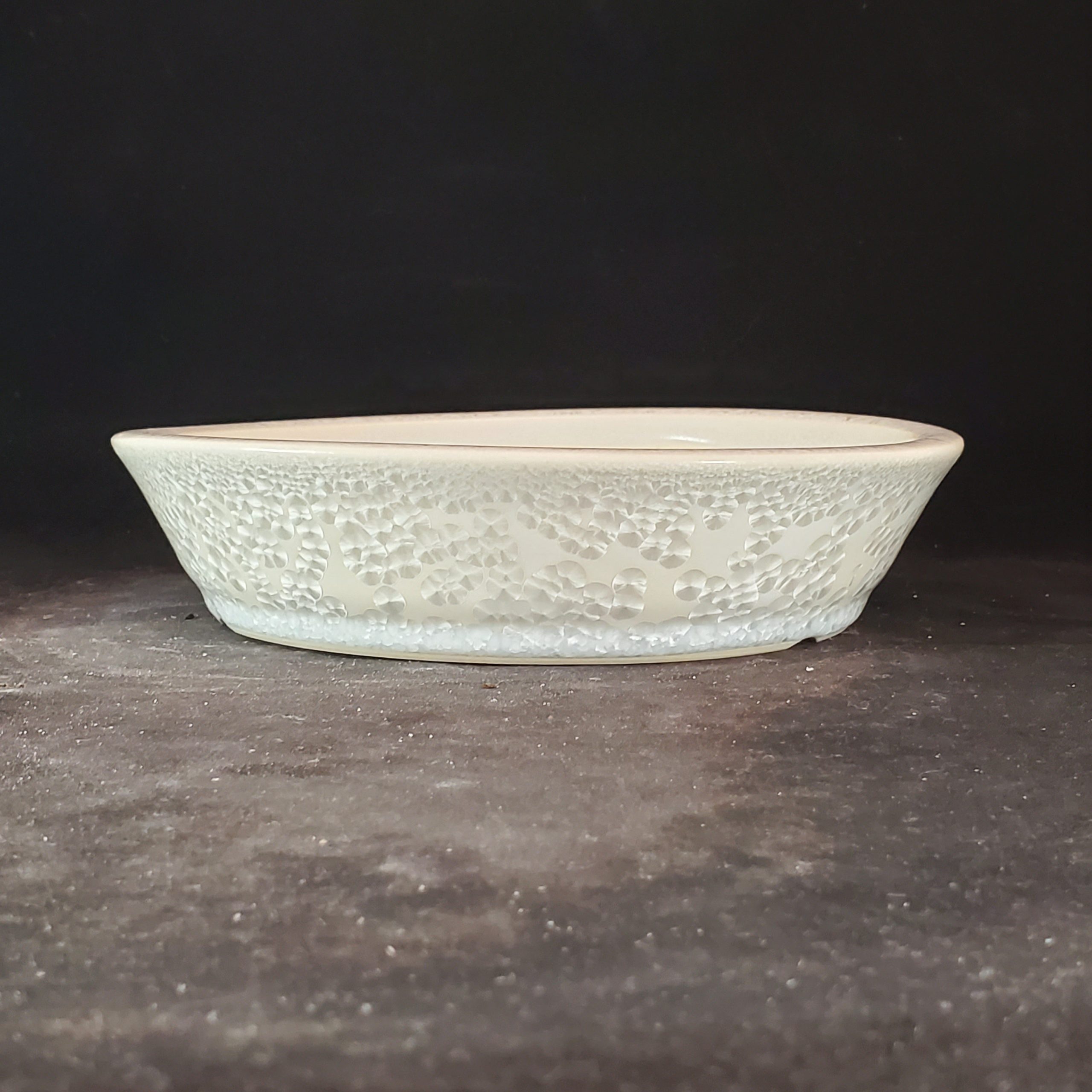 This oval ceramic bonsai pot is a beautiful addition for small plant enthusiasts. It features a crackled – ice glaze on its exterior, creating a soft, icy appearance. With multiple drainage holes at the base, it ensures proper water management for the plants. Although it has a slight wobble, it’s still a great choice.