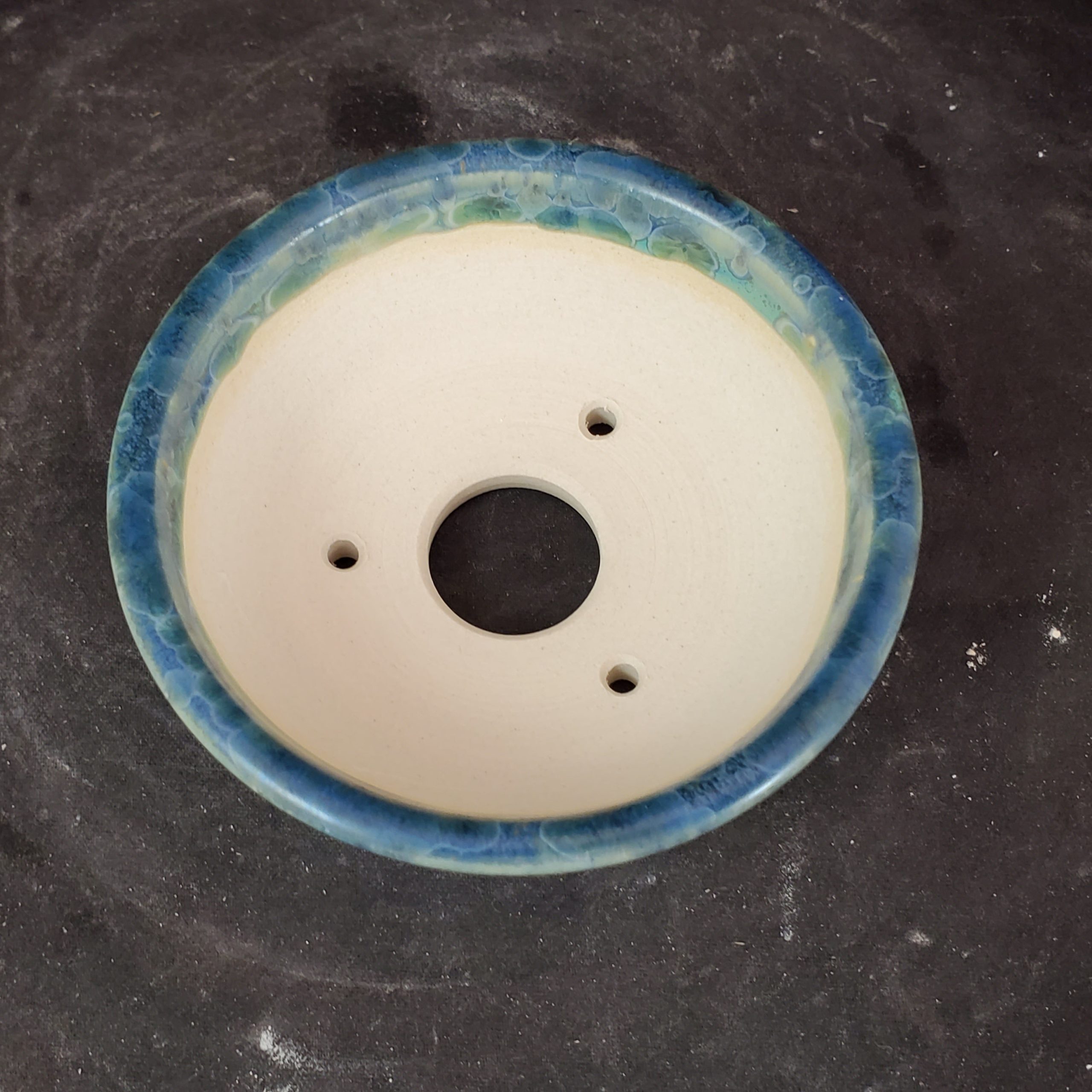 Exterior Color Marbled, iridescent glaze with shades of blue, teal, green, and white