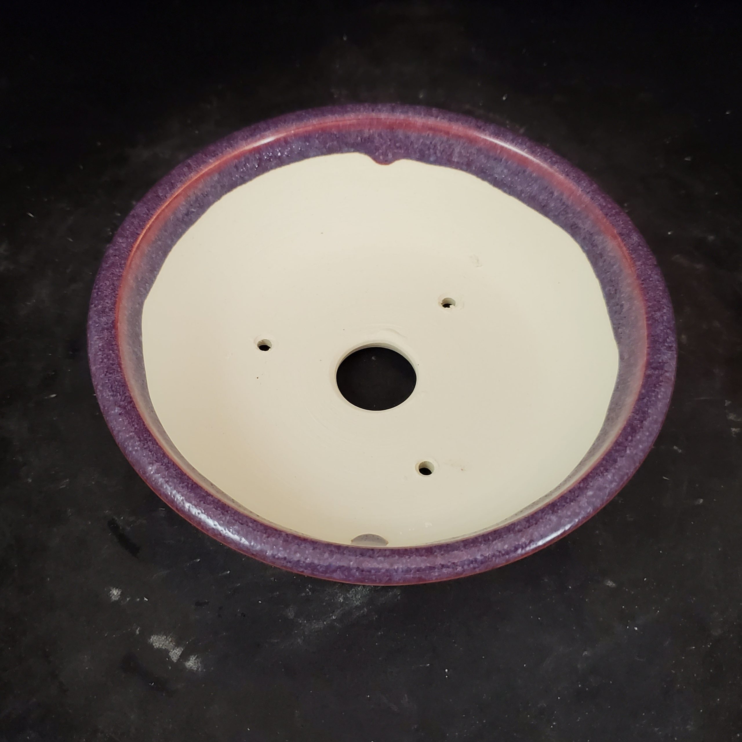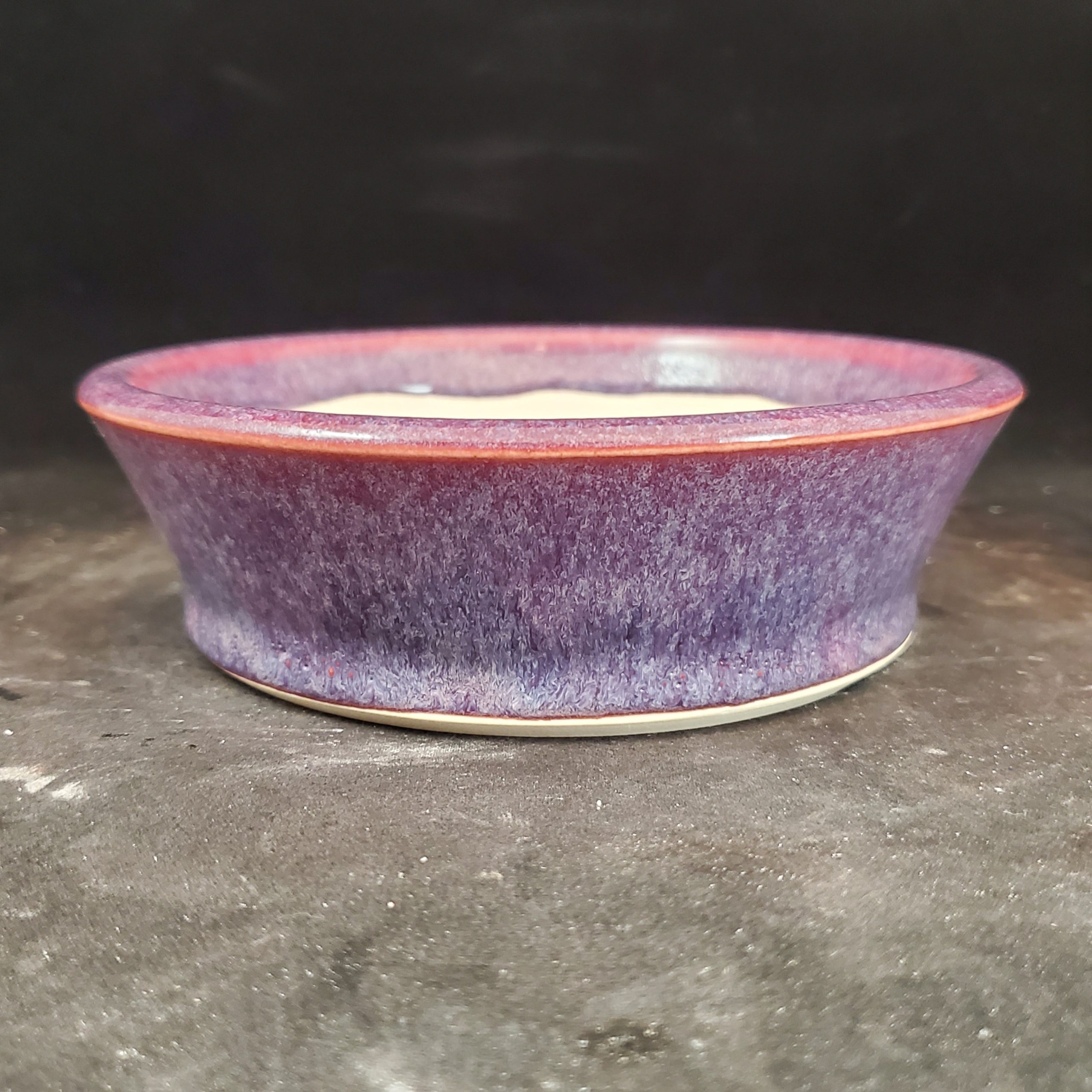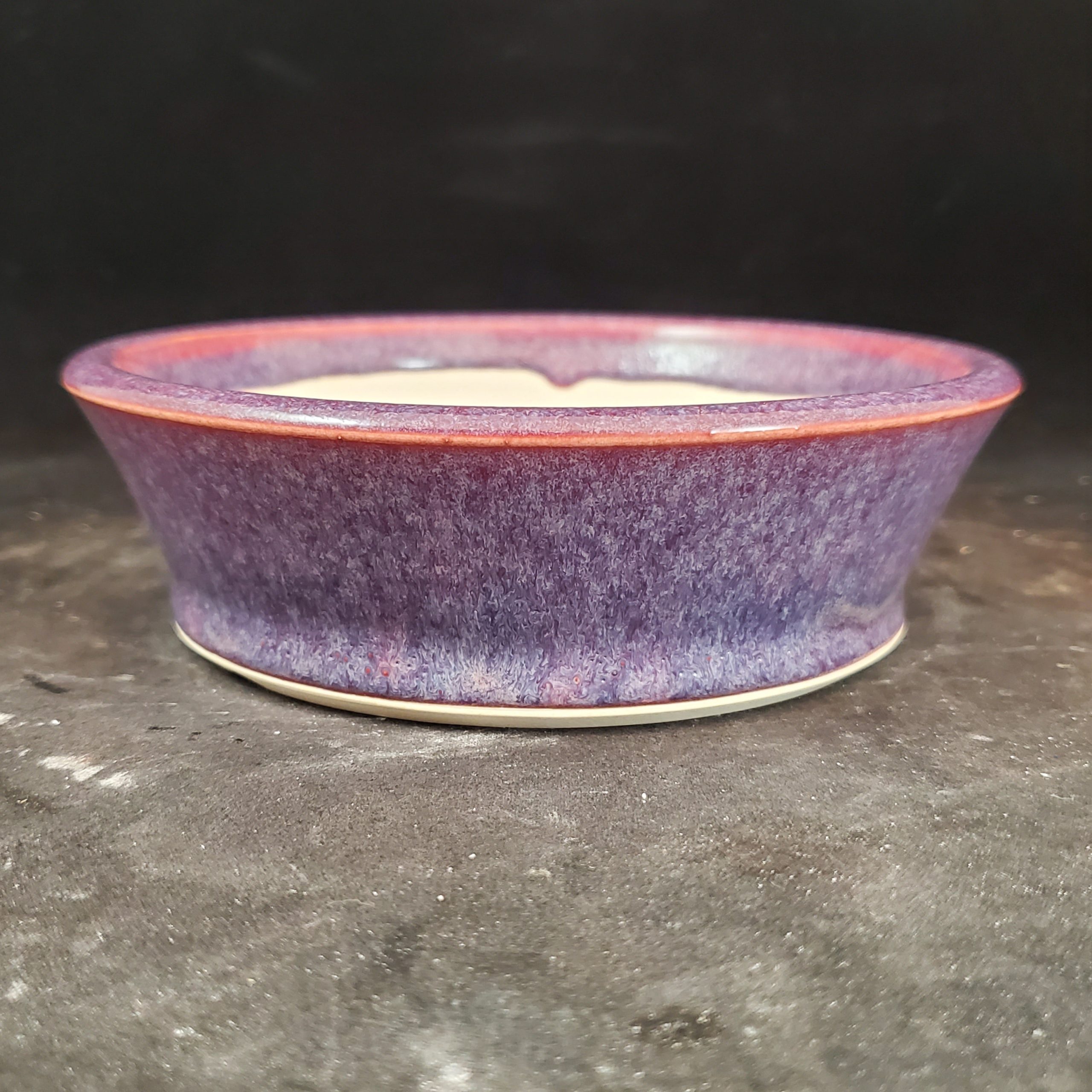 This handcrafted bonsai pot and saucer set is a beautiful addition for plant lovers. The ceramic pot features a unique marbled exterior with a gradient of purple transitioning to a reddish – pink/orange at the rim, while the interior is a solid white. With its drainage holes and matching saucer, it’s perfect for growing small plants.