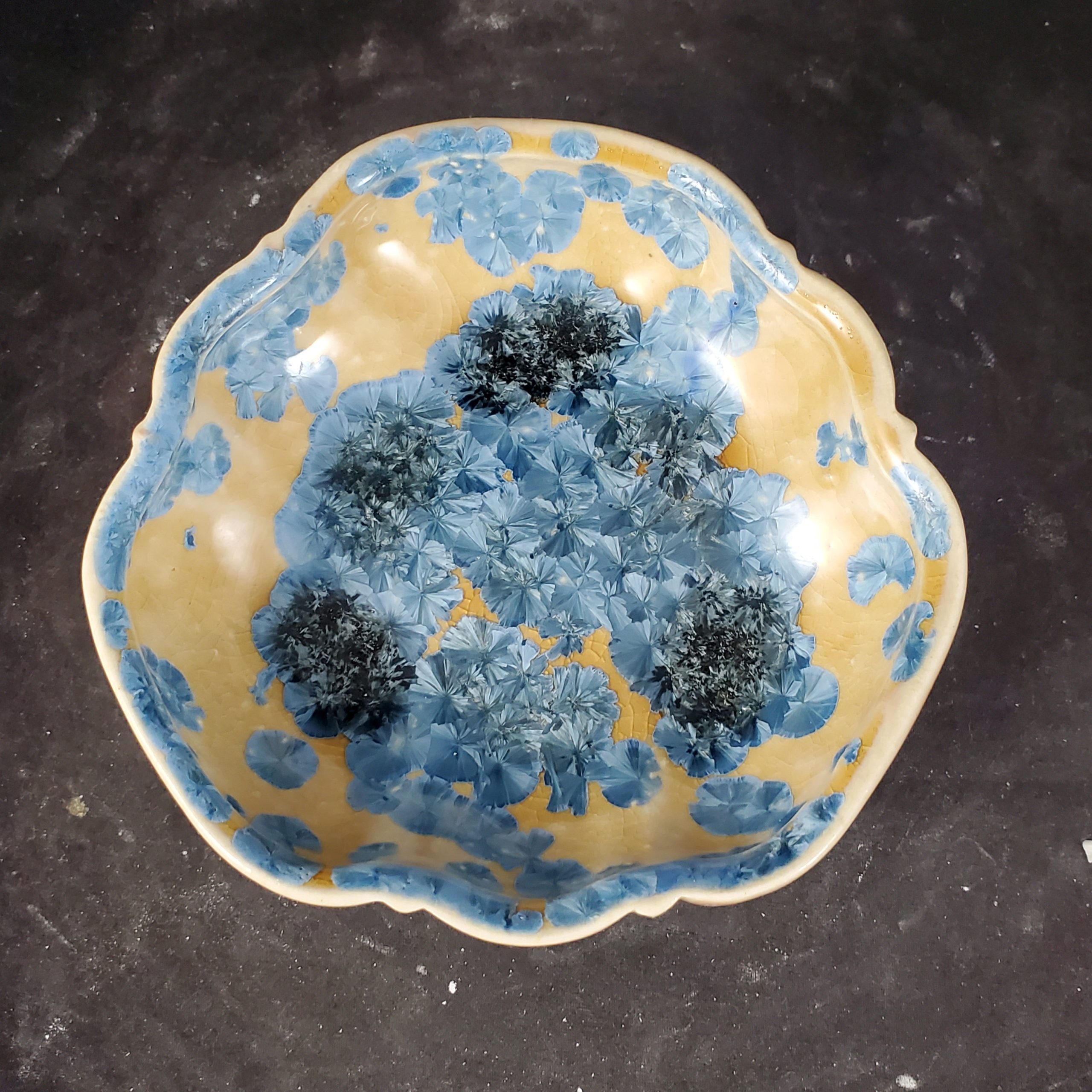 Scalloped Footed Ceramic Crystalline Dish